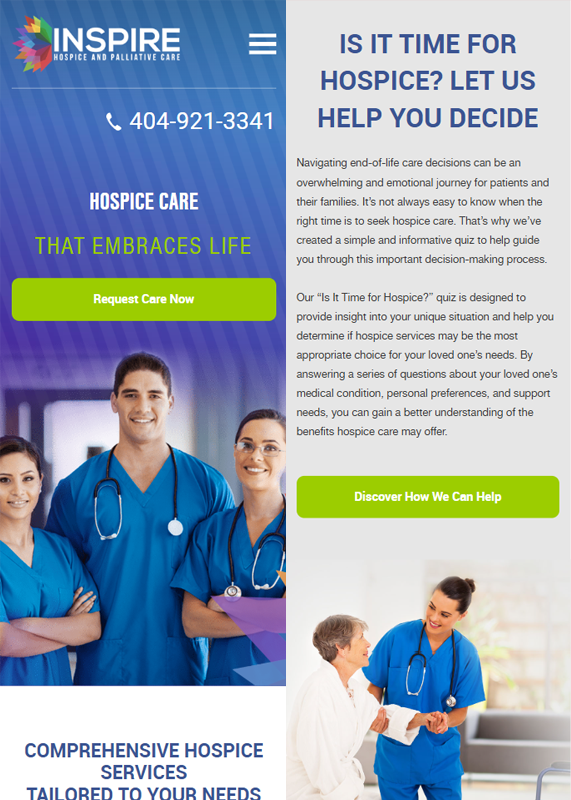 The mobile view is well-structured, with a clean layout and clear navigation. The use of prominent CTAs, like the “Request Care Now” and “Discover How We Can Help,” ensures easy access to key services. The design is modern, visually appealing, and provides a smooth user experience with readable text and engaging images.
