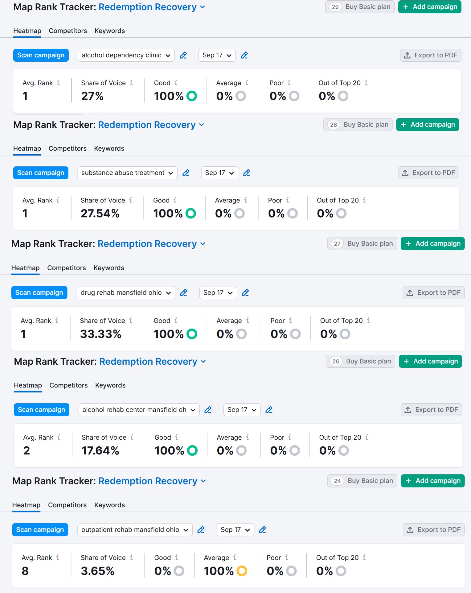 The website appears to have a clean, professional design that aligns with the mission of the Redemption Recovery organization. However, the visual hierarchy could be improved, especially the contrast between text and background for readability. Also, the use of images and icons is effective but can be better optimized for faster load times and accessibility. Consider revising the mobile view to ensure responsiveness and smooth navigation across all device sizes.